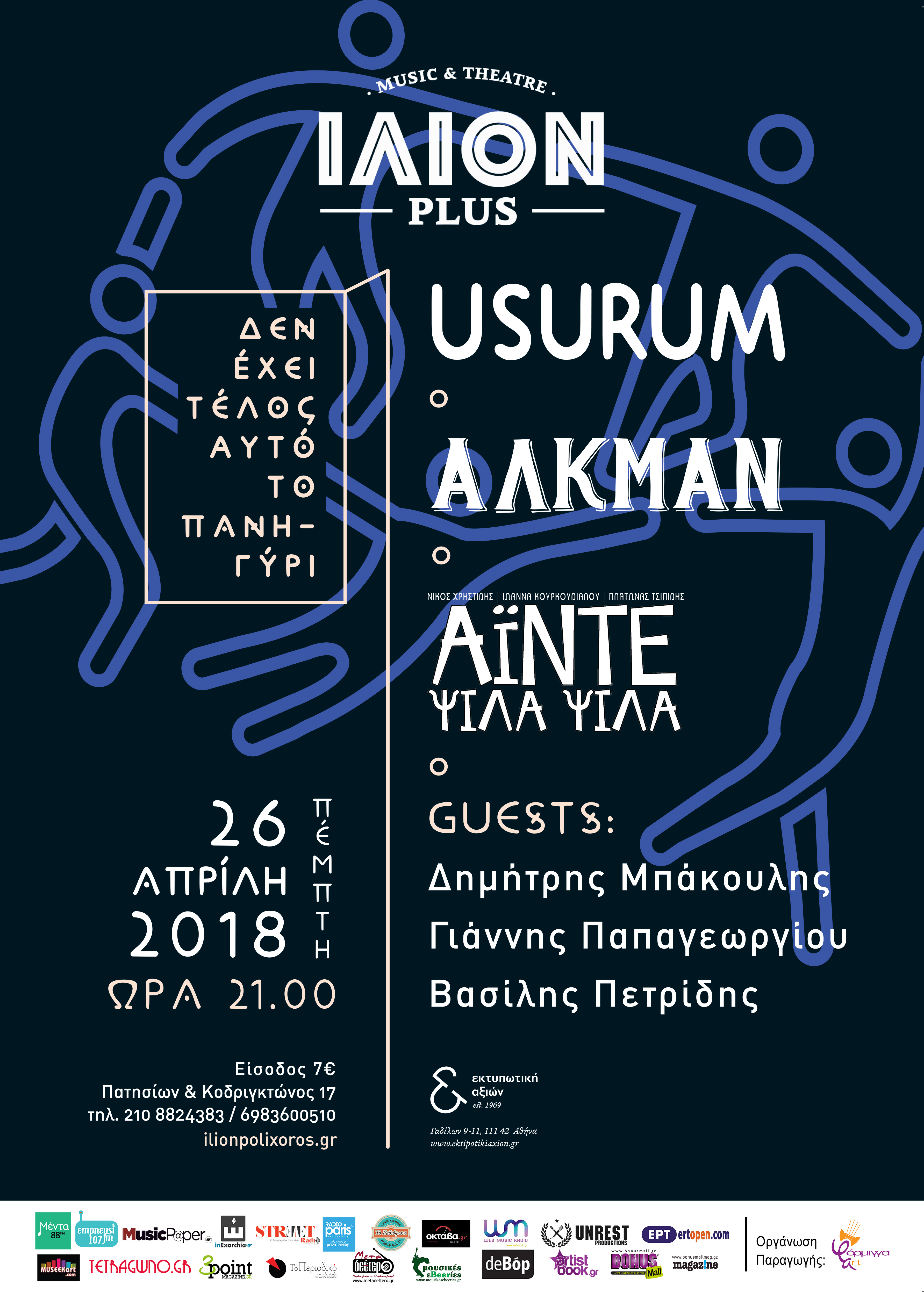 Οι αθηναίοι Αλκμάν & Usurum και οι θεσσαλονικείς  Άιντε ψιλά ψιλά παρουσιάζουν την Πέμπτη 26 Απριλίου στο Ίλιον Plus (Κοδριγκτώνος 17 Αθήνα),  τις πρόσφατες δισκογραφικές τους δουλειές, με τραγούδια που πατούν πάνω στην ελληνική παράδοση με σύγχρονο τρόπο και λόγο, σε μια βραδιά που θα προσπαθήσει να ενώσει το κοινό τους ακροατήριο.